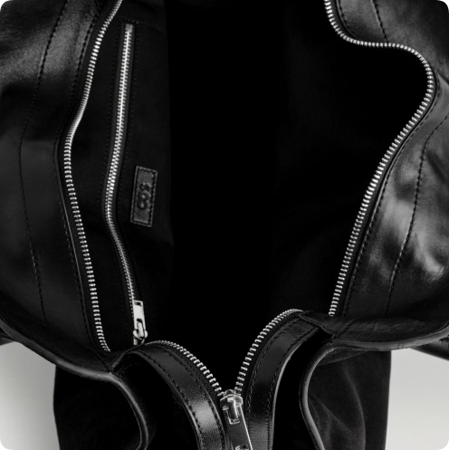 그 자체로 존재감이 확실한 코스 스웨이드 베이직 토트백 블랙 1309826002 NEGRO입니다.